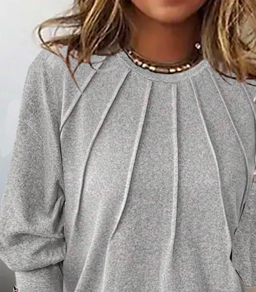 Dieses markante graue Oberteil mit Rundhalsausschnitt und langen Ärmeln ist damit eine vielseitige Ergänzung für jede Garderobe. Hergestellt aus hochwertigem Material, bietet es Komfort und Stil für jeden Anlass. Perfekt zum Layering oder zum alleinigen Tragen, wird dieses Oberteil schnell zu einem Favoriten.