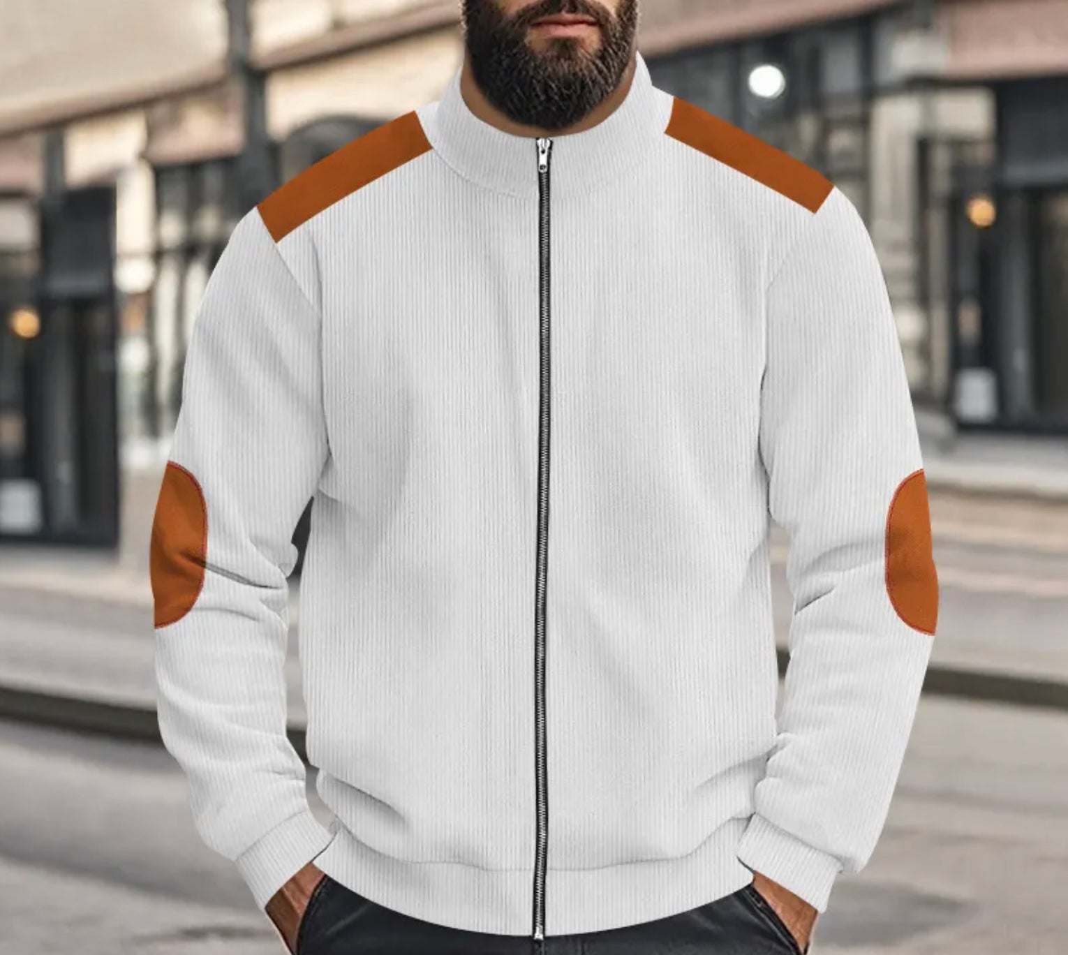 - Modernes Farbblock-Design: Stilvolle Kontraste an Schultern und Ellbogen für einen markanten Look.